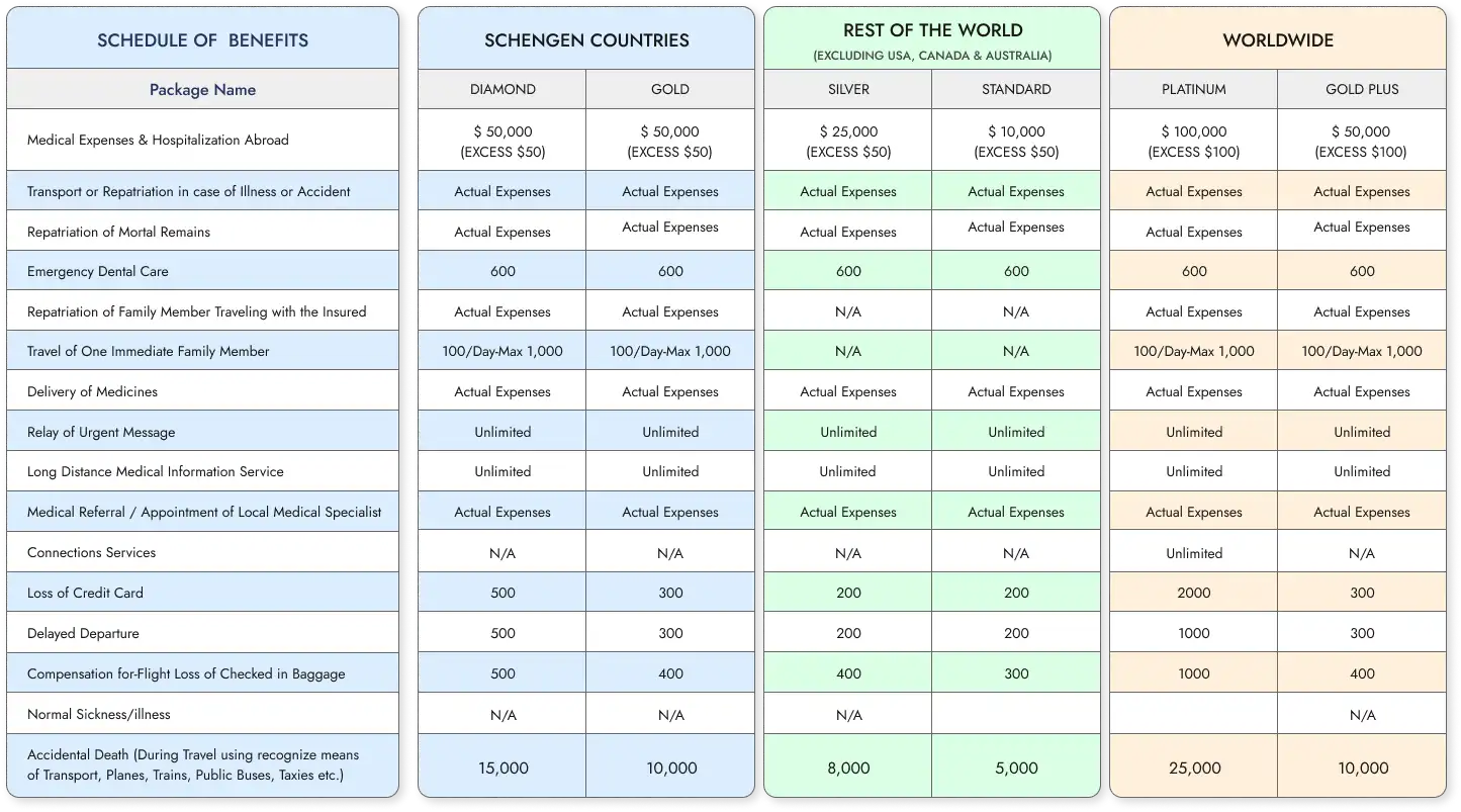 • Emergency Assistance: Coverage for hospitalization, repatriation, and even urgent family travel.